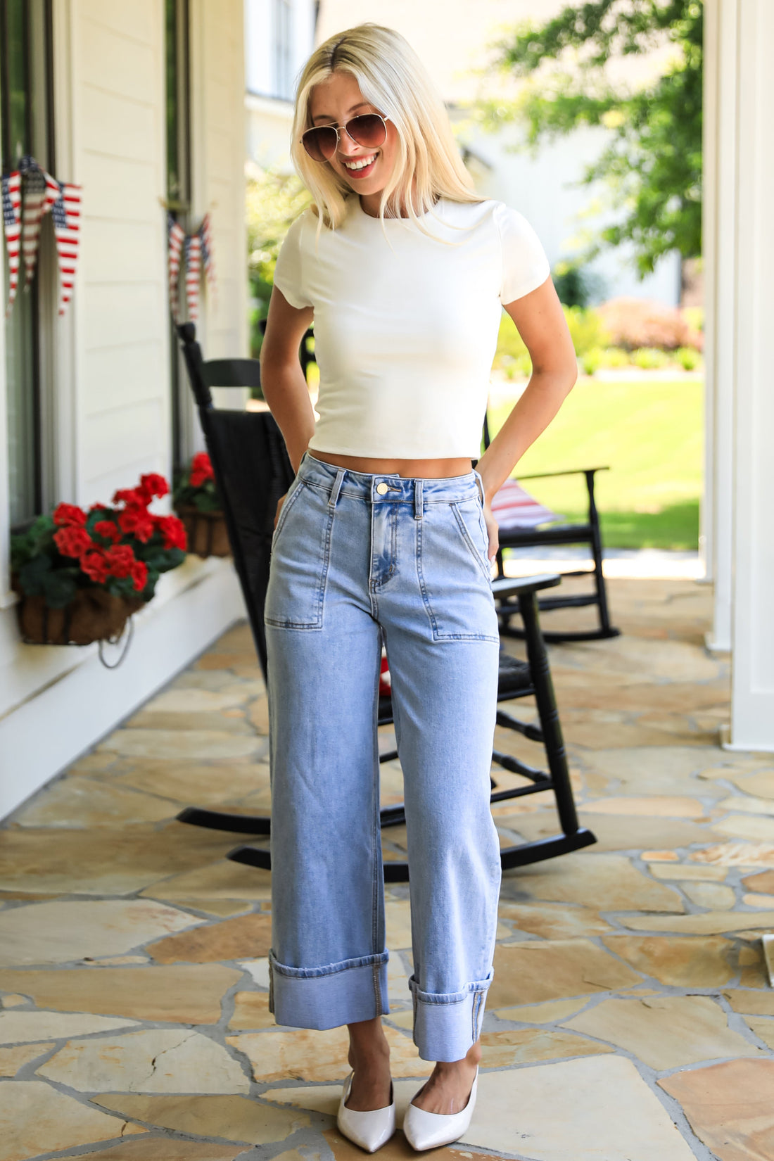Maggie Light Wash Mid-Rise Cuffed Ankle Wide JeansMaggie Light Wash Mid-Rise Cuffed Ankle Wide Jeans- Regular price
