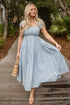 Coastal Muse Light Blue Smocked Midi Dress
