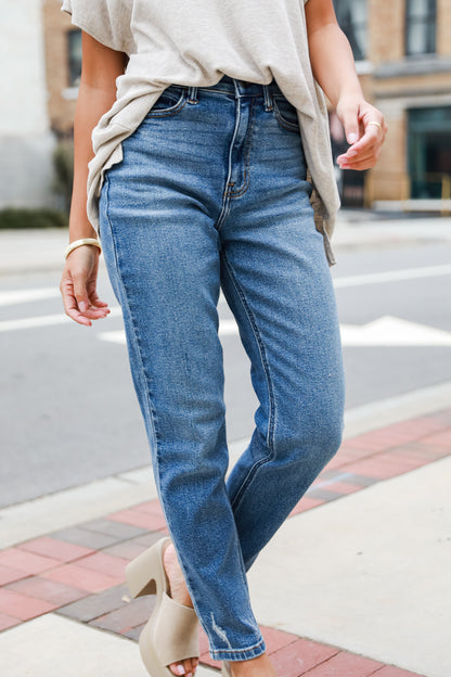 It's easy to conquer the day when you've got the Confidently Stylish Mom Jeans! These jeans are a versatile addition to your wardrobe, designed to elevate your fashion game while keeping you comfortable all day long. Crafted from premium denim in a medium wash, these jeans strike the ideal balance between vintage-inspired charm and contemporary chic. The medium wash gives them a lived-in, authentic look that's both casual and sophisticated, making them suitable for a wide range of occasions. The high-waisted design not only enhances your silhouette but also provides a comfortable, secure fit that flatters your figure. Dress them up with a tailored blazer and ankle boots for a night out, or keep it casual with a cozy sweater and white sneakers for a day of errands. Their versatility ensures they're suitable for any season and occasion!